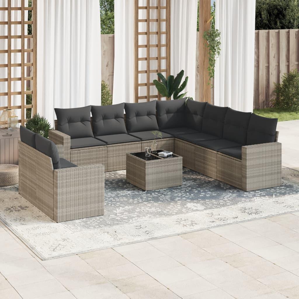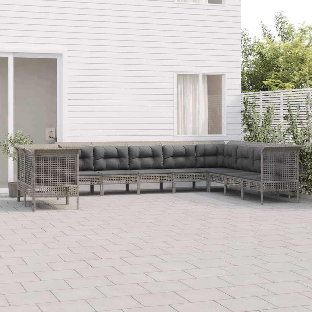 Sofasæt til haven 10 dele med hynder polyrattan grå