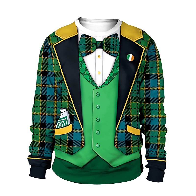 St.Patrick's Day Men's Hoodie Sweatshirt 3D Print Saint Patrick Day Crew Neck Party Street 3D Print Long Sleeve Tops Ethnic Style Lightweight Casual Nostalgic A B