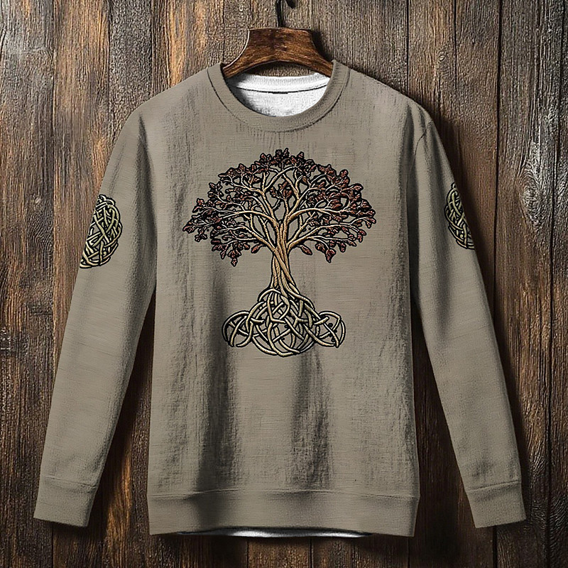 Men's Sweatshirt Black Blue Gray Crew Neck Tree Of Life Yggdrasil Celtic Knot Print Casual Daily Holiday Vintage Viking Fall Winter Clothing Apparel Hoodies Sweatshirts