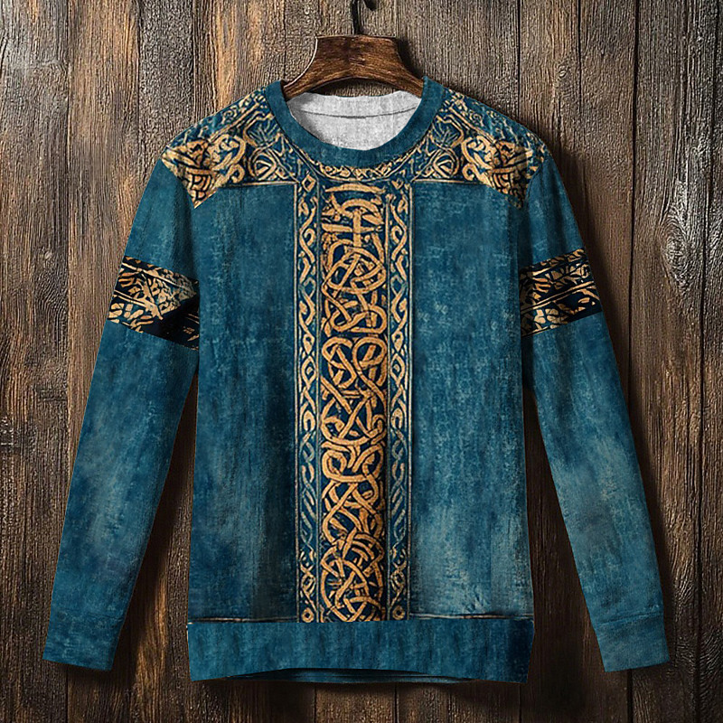 Men's Sweatshirt Army Green Blue Dark Gray Crew Neck Celtic Knot Print Casual Daily Holiday Vintage Viking Fall Winter Clothing Apparel Hoodies Sweatshirts