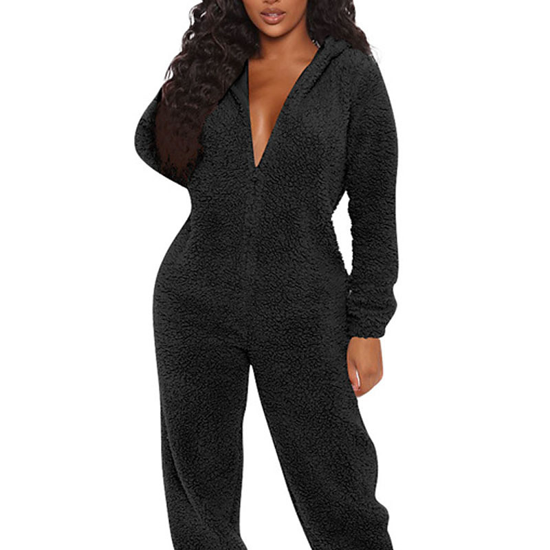 Women's Loungewear Onesie Warm Fashion Sexy Pure Color Zipper Hoodie Pant Vacation Home Street Sleeveless Crew Neck Blue Black White Red Brown Fall Winter Regular Fit