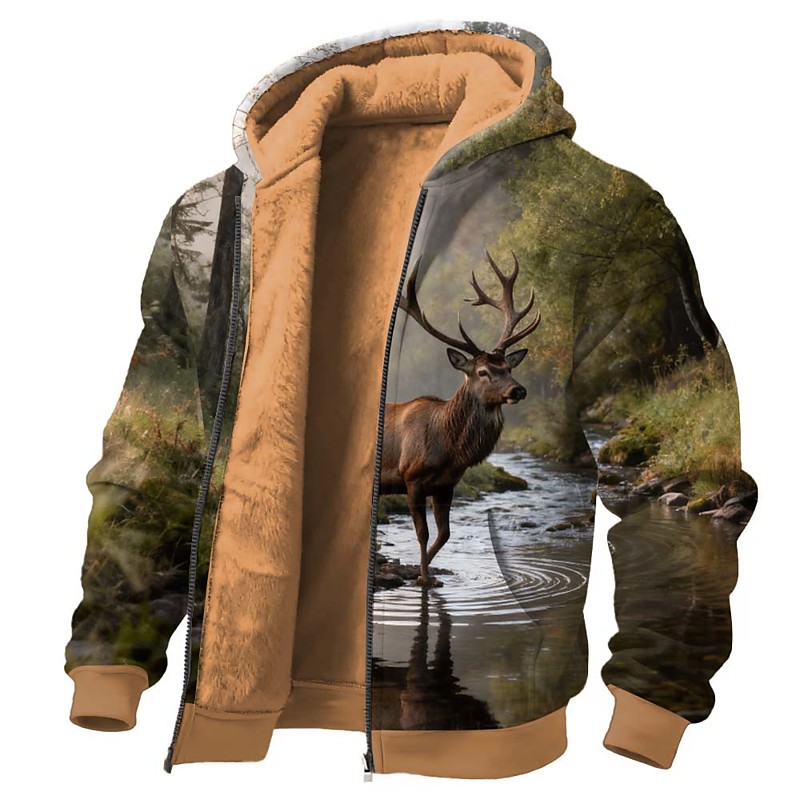 Men's Deer Fleece Hoodie Jacket Sweatshirt Classic Military Hunting Long Sleeve Crew Neck Outdoor Camping Light Brown Brown Gray Zip Up Fall Winter Designer S M L XL 2XL 3XL