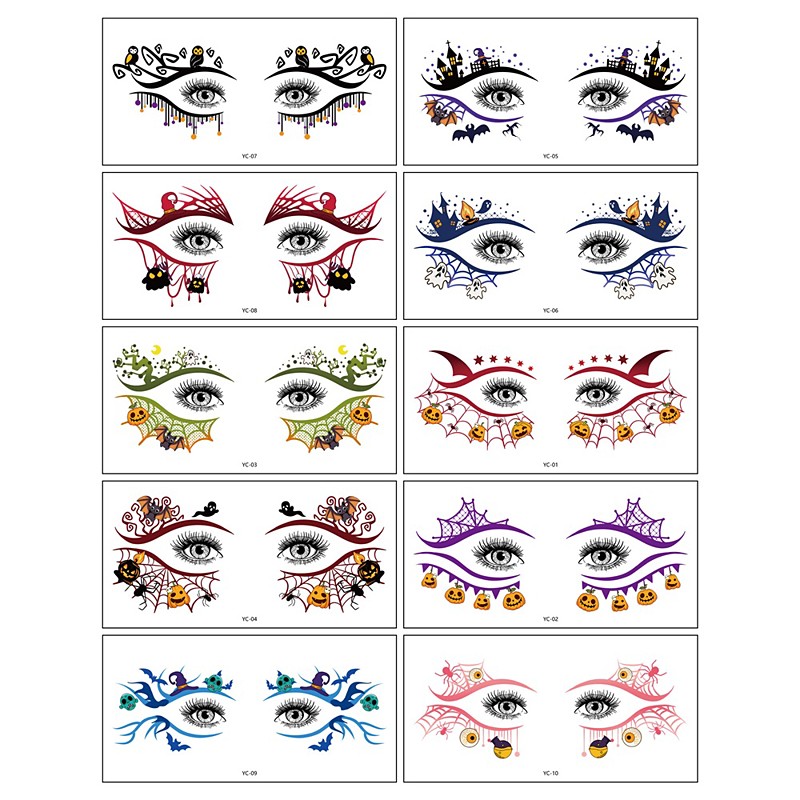 Halloween Corner Eye Makeup Tattoos – 10pcs Premium Temporary Face Tattoos for Party Holiday Decorations