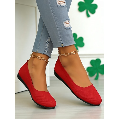 Grüne Flyknit-Ballerinas für Damen – bequeme, dehnbare Slipper, ideal für St. Patrick's Day, Erledigungen, Brunch und Büroalltag.