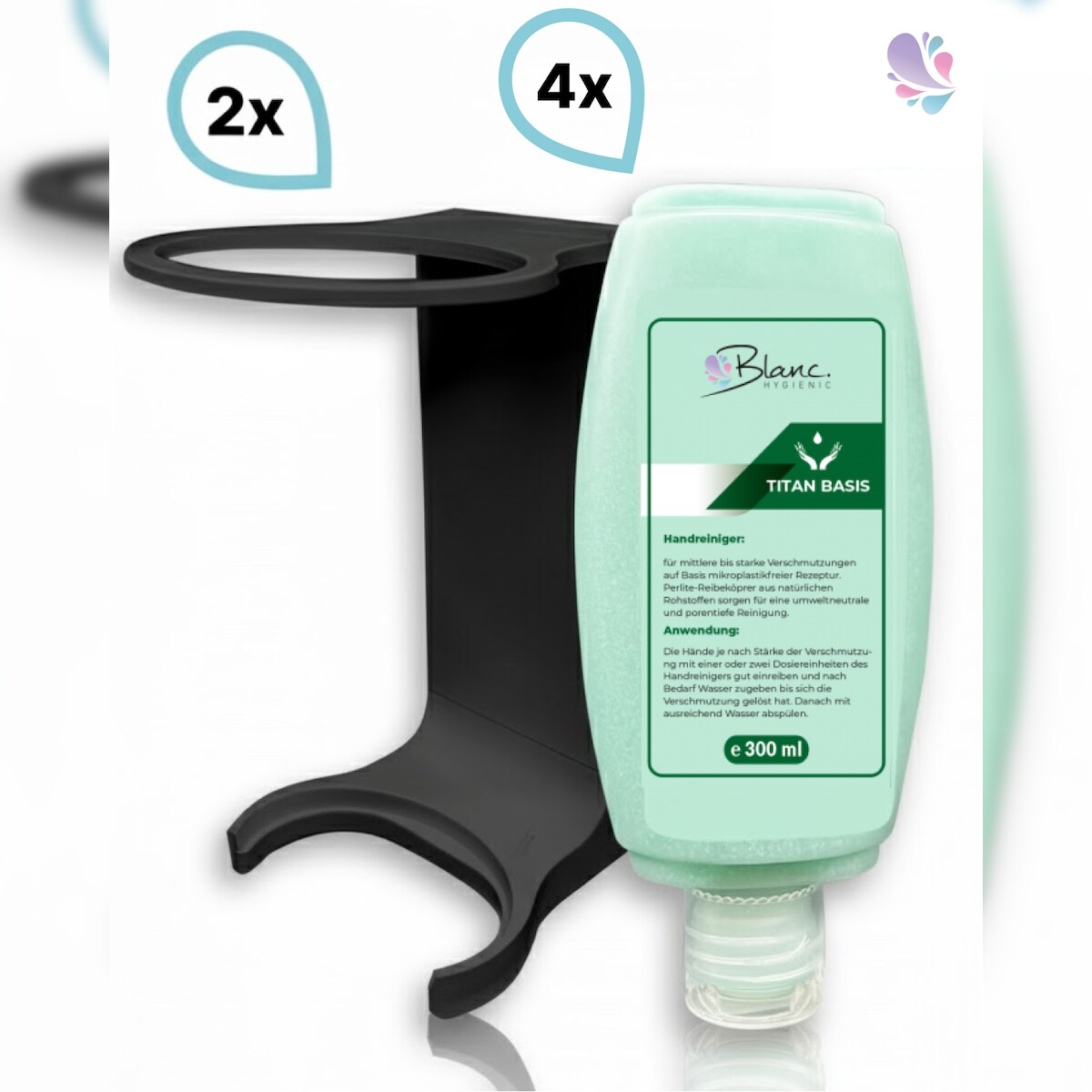Blanc HYGIENIC SET: Mini Fix-System - 2x Mini Fix Spender + Grobreiniger für stärkere Verschmutzungen, natürlich, 4x300 ml