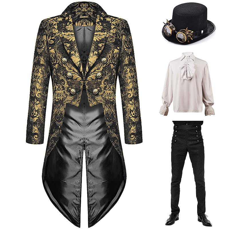 Set Retro Vintage Medieval Coat Jacket Tailcoat Ebenezer Scrooge Dickens Vampire Elf Mad Hatter Fancy Dress Men's Fantasy Royal Steampunk Christmas Halloween Carnival Performance Party / Evening Stage