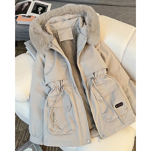 Per donna Giacca imbottita Giacca in Pile Cappotto in Pelliccia Sintetica Caldo Confortevole Bordo in pelliccia Cerniera Tasca Casual Semplice Vacanza Abbigliamento quotidiano Uscire Weekend Regolare