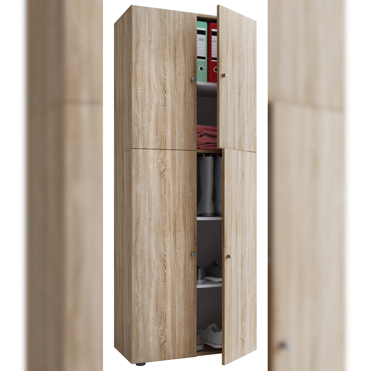 Schuhschrank VCM "VCM XL Holz Großer Schuhschrank Schuhregal Groß Stiefel Dielenmöbel Lona 6 Fächer" Gr. 70, braun (weiß, sonoma, eiche), B:70cm H:220cm T:40cm, Obermaterial: 100% Holz Wood., Schränke, Schuhschrank