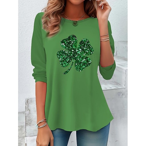 San Patrizio Per donna Maglietta Trifoglio Piante Casual Manica Lunga Girocollo Top Regolari Quotidiano Stampato Nero Bianco Verde Primavera Autunno