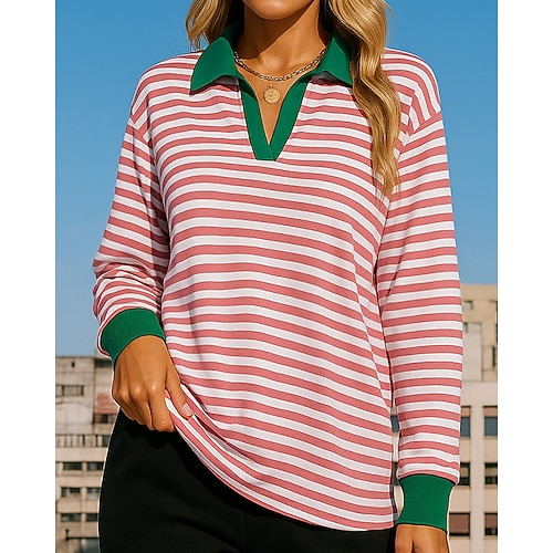 Per donna Felpa pullover Top casual Manica Lunga Top Athleisure Scollo a V A righe Protezione Solare Antivento All'aperto abbigliamento sportivo Abbigliamento sportivo Rosa scuro Nero Rosa