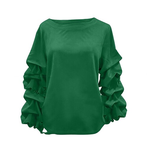 Per donna Blusa Top Eleganti Tinta unica Semplice Elegante Vintage Carino Manica Lunga Girocollo Top Regolari Lavoro Quotidiano Ferie Arricciato Volant Patchwork Verde primavera Nero Bianco Verde