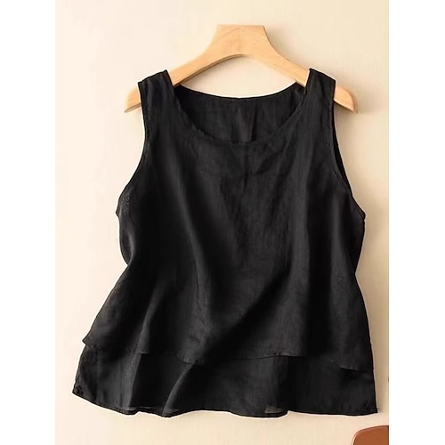 Per donna Canotta a canotta Tinta unica Elegante Casual Senza Maniche Girocollo Top Regolari Quotidiano Arricciato Nero Bianco Verde Estate