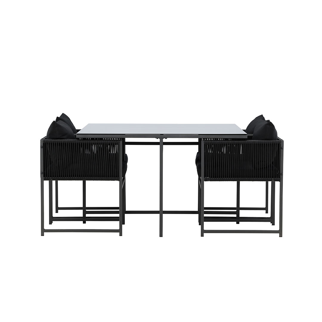 Noto Gartenset 1 Esstisch, 2 Stühle schwarz.