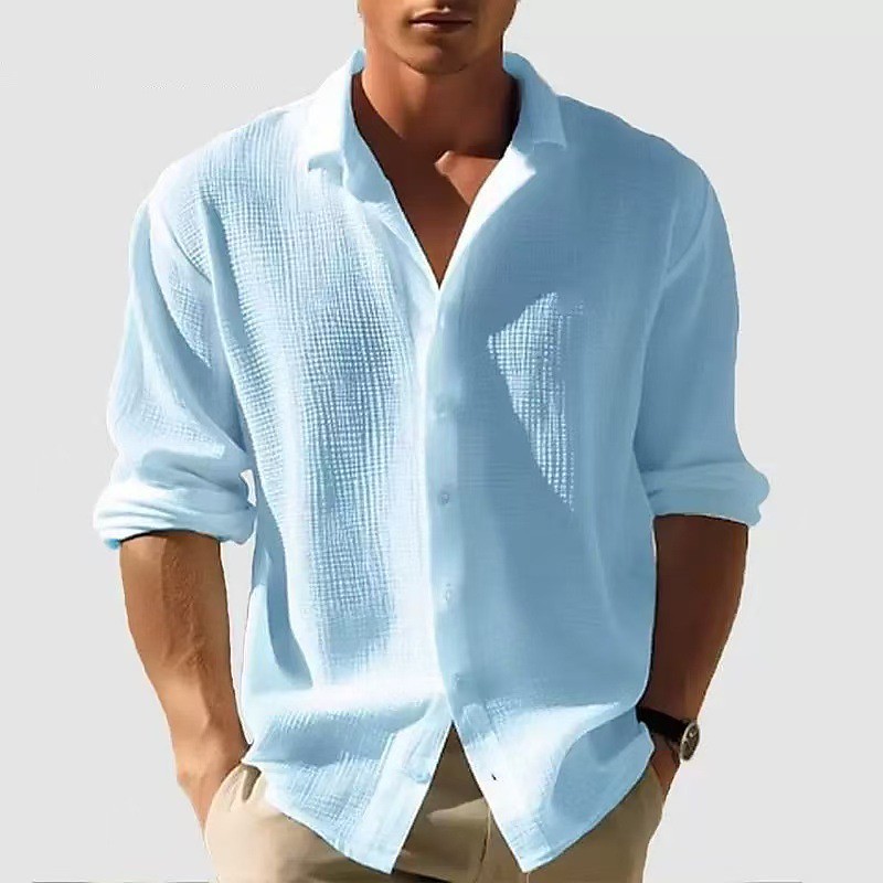 Men's Shirt Waffle Shirt Casual Shirt Button Up Shirt White Pink Blue khaki Light Grey Long Sleeve Plain Lapel Daily Going out Plain Clothing Apparel Fashion Modern Casual Comfortable