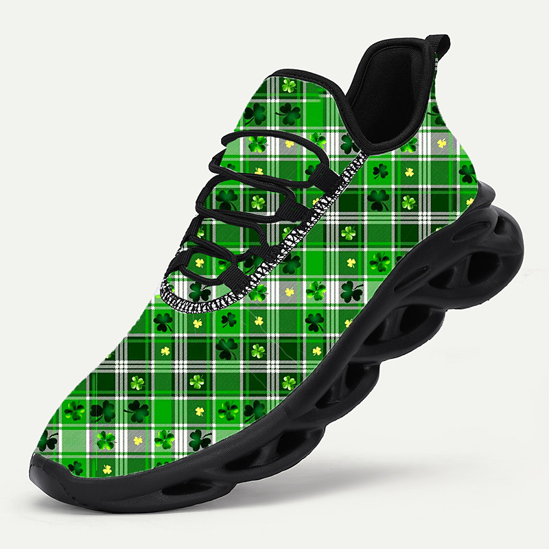Men's St. Patrick's Day Sneakers – Green Plaid Pattern with Shamrocks, Ideal for Parades and Celebrations