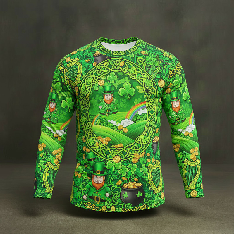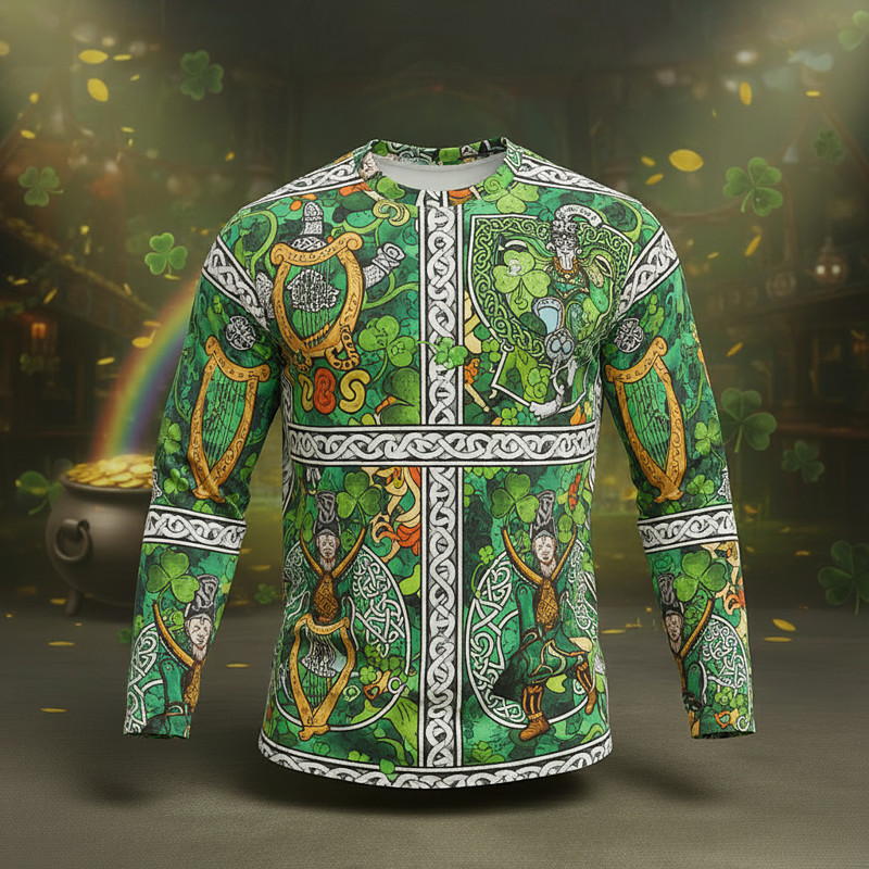 St. Patrick's Day Long Sleeve T-Shirt for Men Lucky Irish Clover Shamrock Graphic Tee 3D Print Crew Neck St. Paddy's Day Top