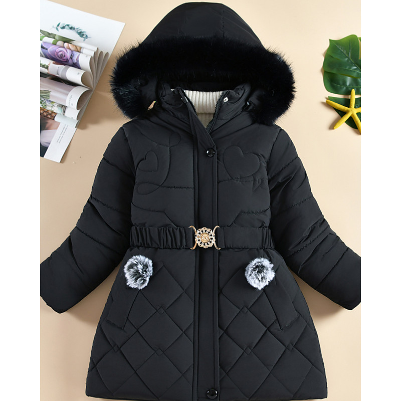 Kids Girls' Down Coat Kids Puffer Jacket Active Zipper School Cotton Coat Outerwear 4-13 Years Winter Black Sky Blue Dark Green