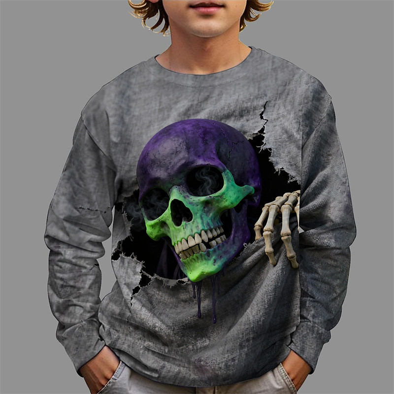 Halloween Boys' 3D Skull T shirt Tee Long Sleeve Spring Fall Fashion Basic Kids 4-12 Years Crew Neck Outdoor Casual Daily Regular Fit