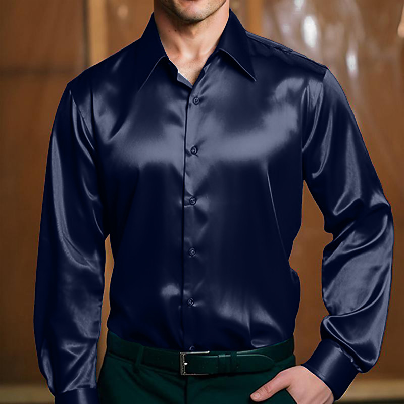 Men's Shirt Silk Like Satin Shirt Dress Shirt Button Up Shirt Plain Formal Wedding Light Blue Black White Wine Long Sleeve Lapel Spring Fall All Seasons Clothing Apparel