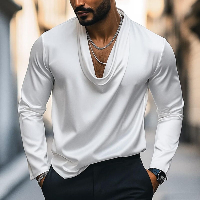 Men's Shirt Silk Like Satin Shirt Casual Shirt Plain Formal Wedding Black White Blue Purple Long Sleeve Cowl Neck Spring Fall All Seasons Clothing Apparel Ruched