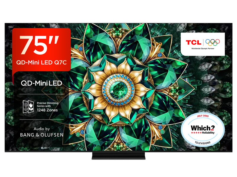 TCL 75Q7C-UK 75” QD-Mini LED TV, 4K UHD, Smart Google TV with 144Hz Motion Clarity Pro, Dolby Atmos, Audio by Bang & Olufsen, Game Master