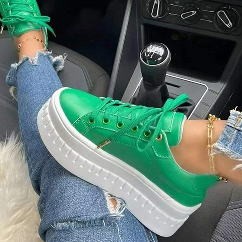 Women's White Platform Lace-Up Sneakers with Chunky Sole - Trendy Casual Shoes for Streetwear and Everyday Style