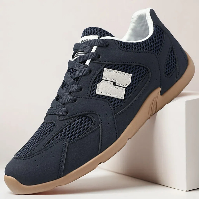 Men's Navy Blue Athletic Sneakers – Lightweight Running Shoes with Tan Accents, Breathable Upper, and Cushioned Sole for Everyday Comfort and Sports
