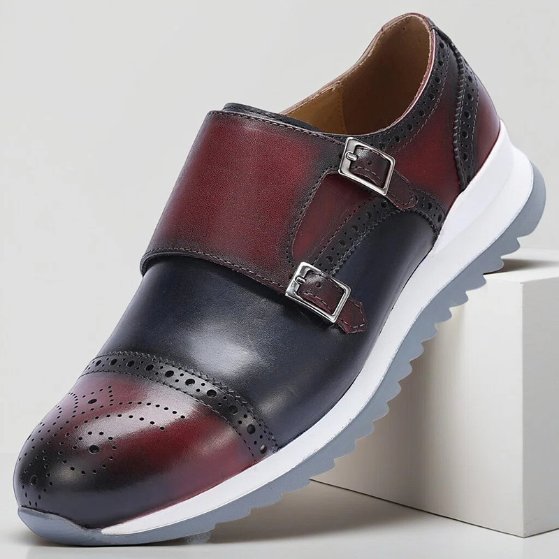 Men's Premium Cowhide Two-tone Leather Brogue Sneakers with White Sole - Stylish Casual Shoes for Work and Weekends