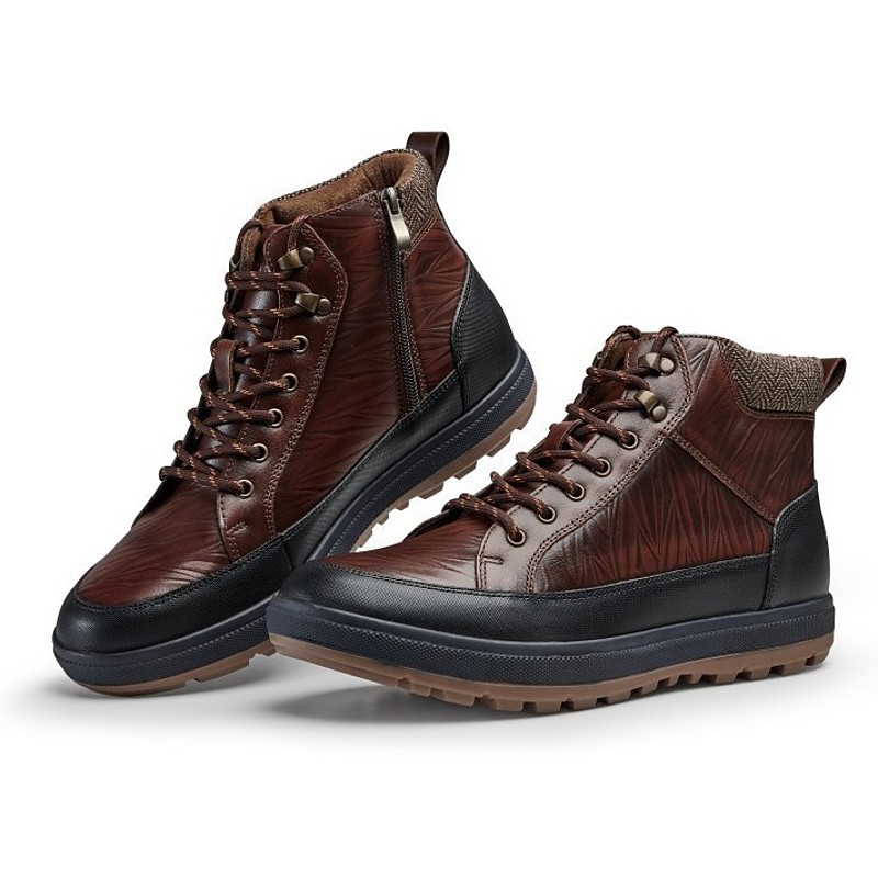 Men's Brown Leather High-top Sneakers with Rugged Sole - Casual Footwear for Outdoor Adventures, Hiking and Weekend Getaways