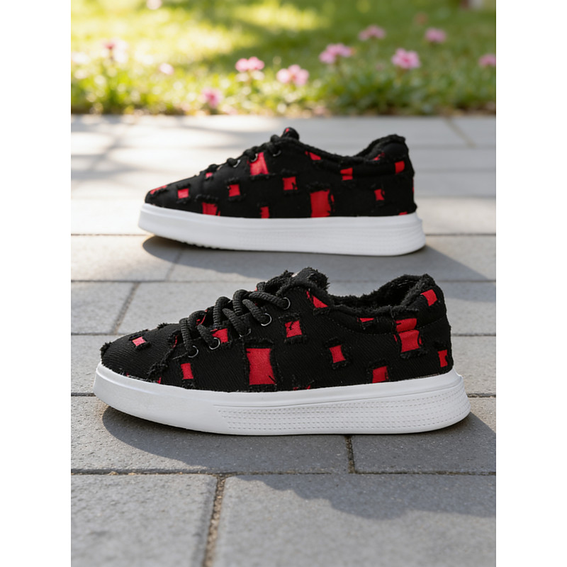 Women's Casual Denim Sneakers - Trendy Frayed Denim with White Sole, Comfortable Lace-Up Style for Summer and Everyday Wear