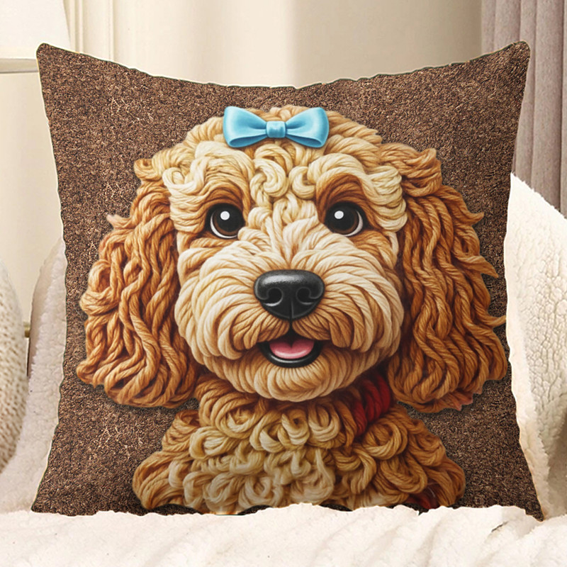 Valentine's Day 2D Flat Print Pillow Cover, Cute Dog with Blue Bow, Adorable Valentine's Day Gift, Decorative Cushion Case for Sofa, Bed, or Chair