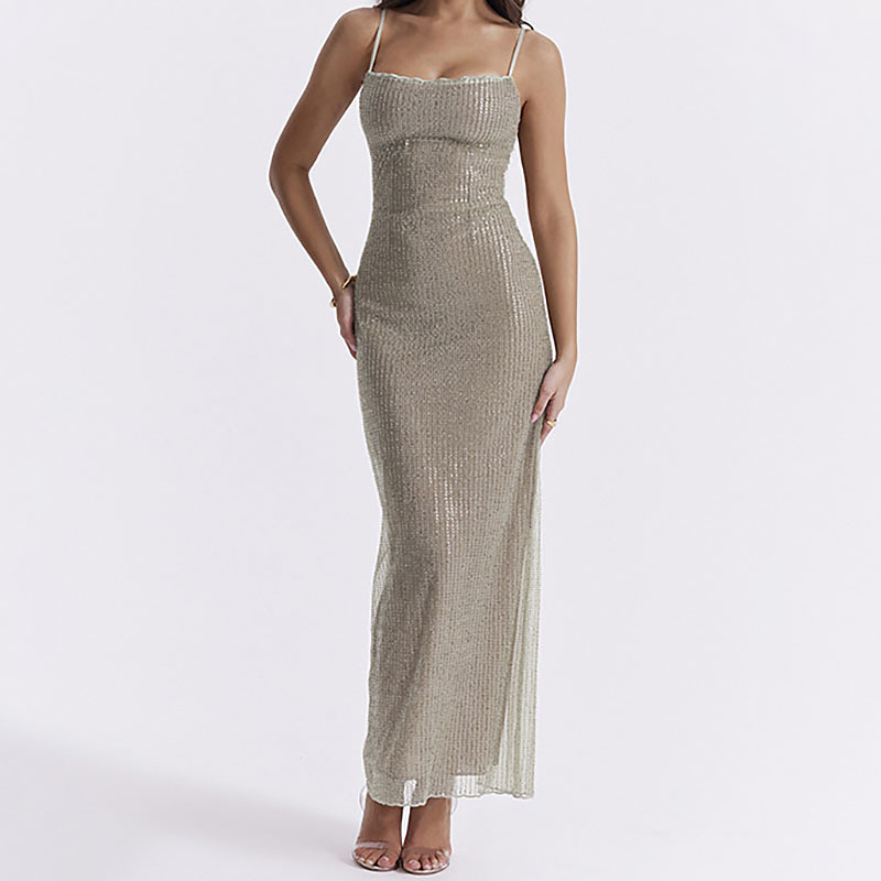 Women's Long Dress Maxi Dress Party Dress Cocktail Dress Slip Dress Elegant Fashion Modern Evening Party Party Cocktail Party Regular Fit Slim Plain Sleeveless Spaghetti Strap Off Shoulder Apricot