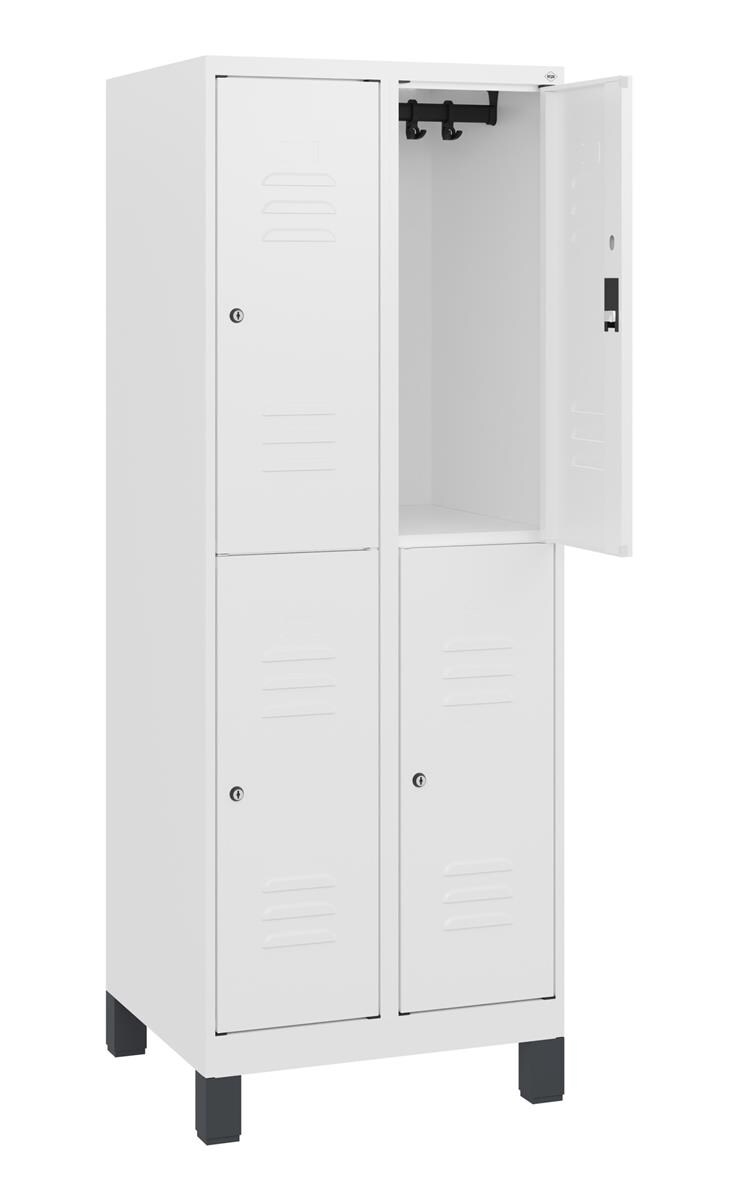 C+P Spind Classic PLUS, Füßen, 4 Abteile, HxBxT 195x120x50cm, Sicherheitsdrehriegel, Hellgrau/Hellgrau von PROREGAL