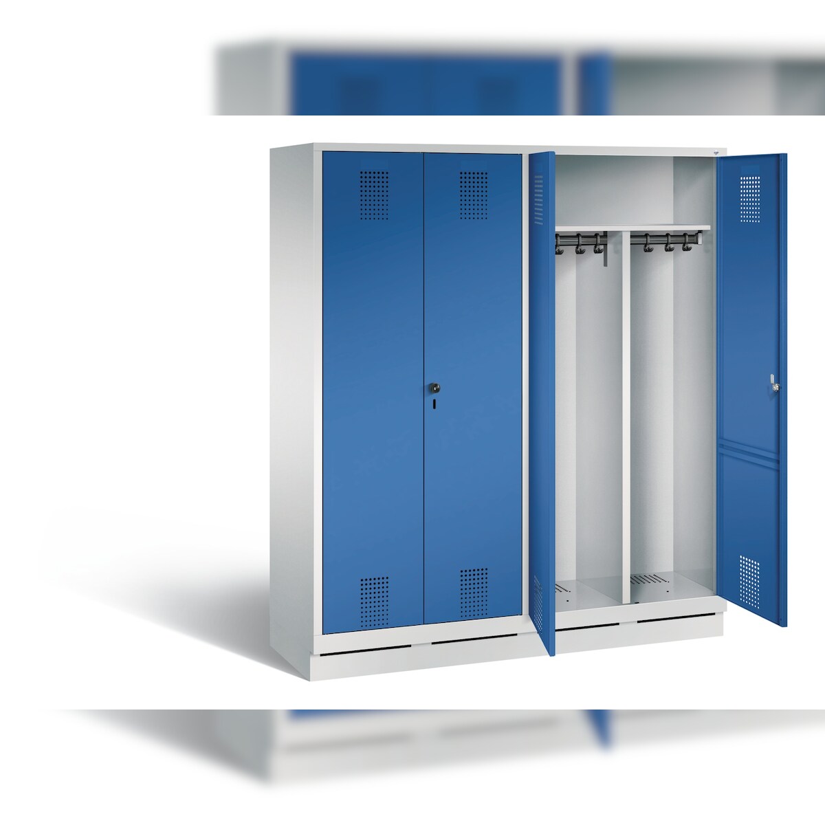 C+P Doppel-Spind Classic PLUS, Sockel, 2 Abteile, HxBxT 195x80x50cm, Zylinderschloss, Hellgrau/Fernblau von PROREGAL