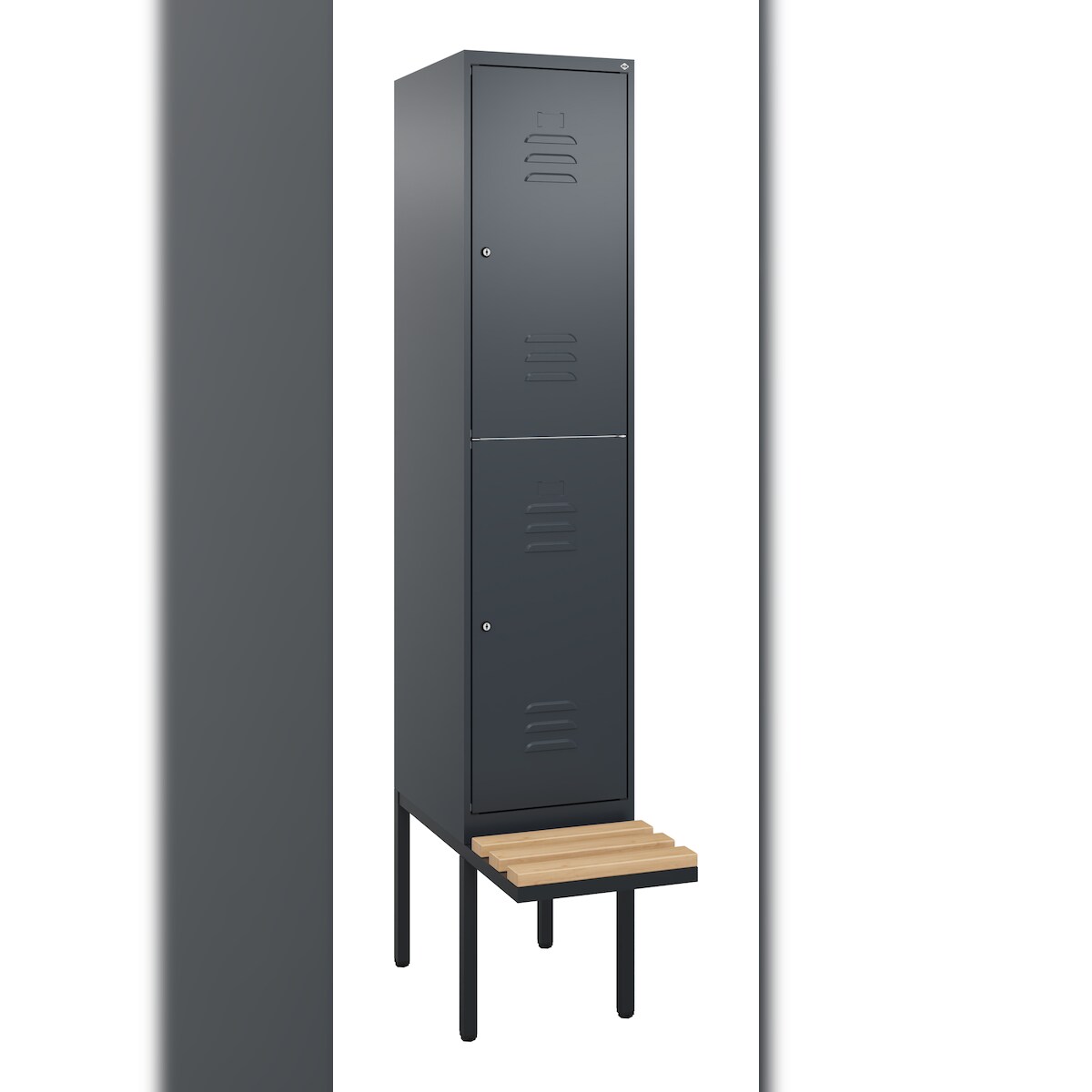 C+P Spind Classic PLUS, Buche schwebende Sitzbank, 2 Abteile, HxBxT 212x40x82cm, Zylinderschloss, Anthrazit von PROREGAL