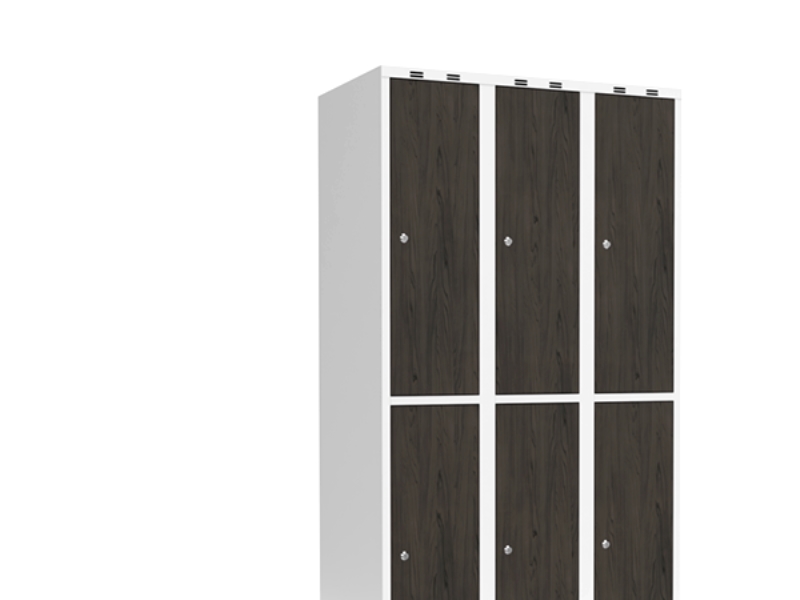 Koulun kaappi 2x300 Suora katto 4 lokeroa korkeudella Valkoinen laminaattiovi Sylinterilukko H