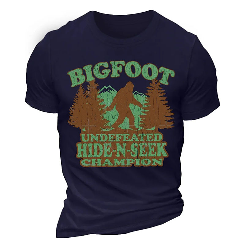 Mens Graphic T-Shirt Bigfoot Undefeated Hide-N-Seek Champion Funny Short Sleeve