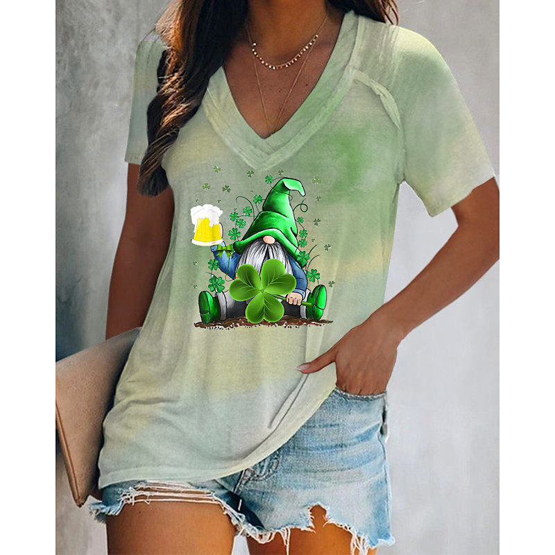 St. Paddy's Day St. Patrick's Day Women's T Shirt Heart Leaf St. Patrick's Day Short Sleeve V Neck Regular Tops Holiday Weekend Print Grass Green Light Green Army Green Green Jade
