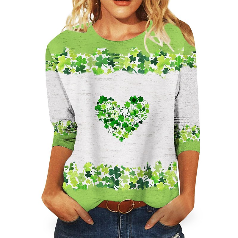 St. Patrick's Day Women's Lucky T Shirt Shamrock Fashion Long Sleeve Round Neck Regular Tops Casual Print Grass Green Yellow Light Green Army Green Dark Green Spring Fall