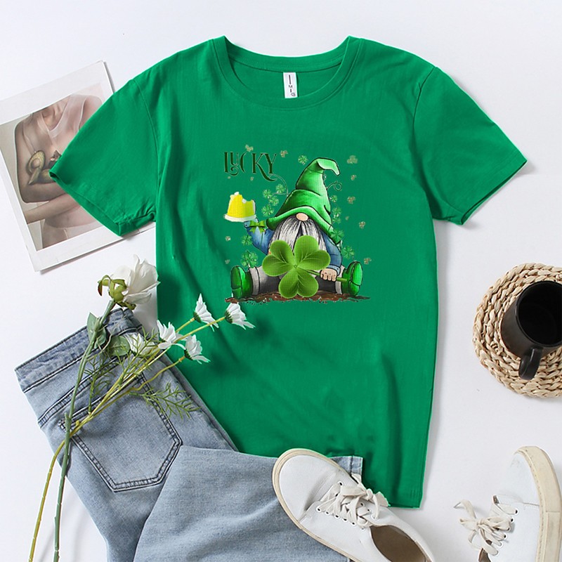Women's T shirt Tee Shamrock St.Patrick's Day Casual Grass Green Dark Green Green Print Short Sleeve Fashion Round Neck Regular Fit Spring Summer