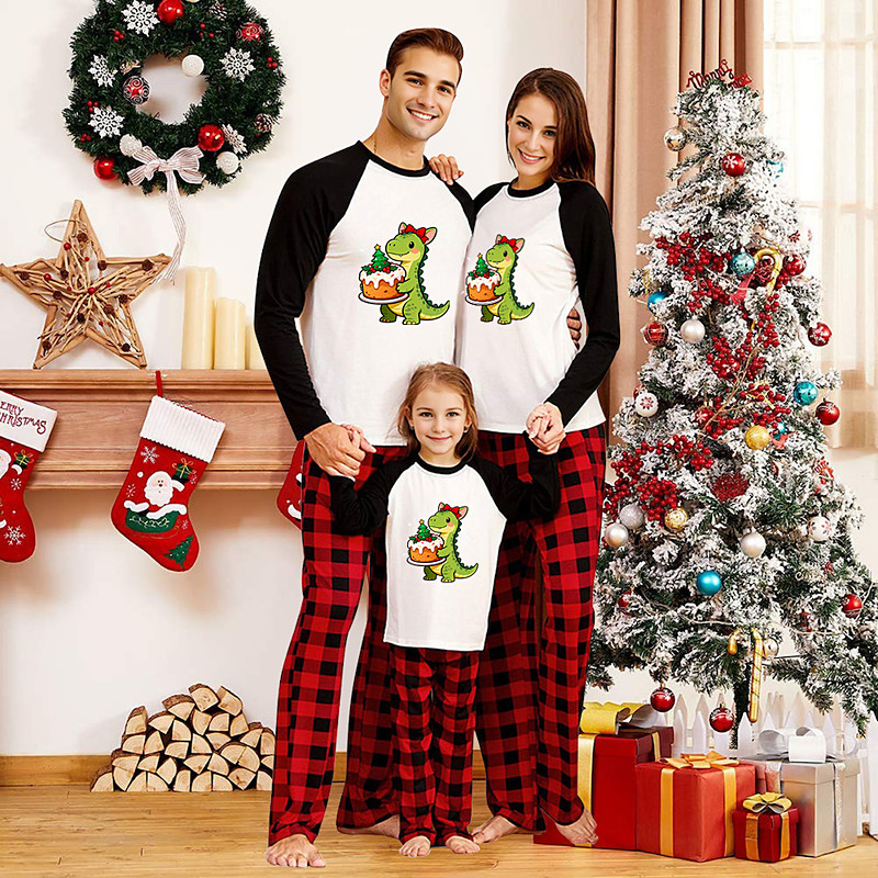 Family Christmas Christmas Family Pajamas Pajamas Family Sets Plaid Dinosaur Christmas Tree Home Print Deep Green Light Green Army Green Long Sleeve Daily Matching Outfits