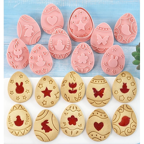 Set di tagliabiscotti pasquali, 10 stampi per biscotti, set di tagliabiscotti a forma di uova di Pasqua con timbri a stantuffo, utensili da cucina, timbri in plastica per biscotti