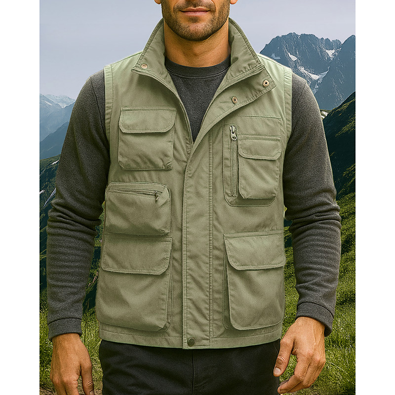 Men's Outdoor Vest Vest Fishing Vest Outdoor Daily Fashion Casual Spring Fall Pocket Buttons Nylon Comfortable Plain Zipper Stand Collar Regular Fit Black Khaki Army Green Dark Blue Vest