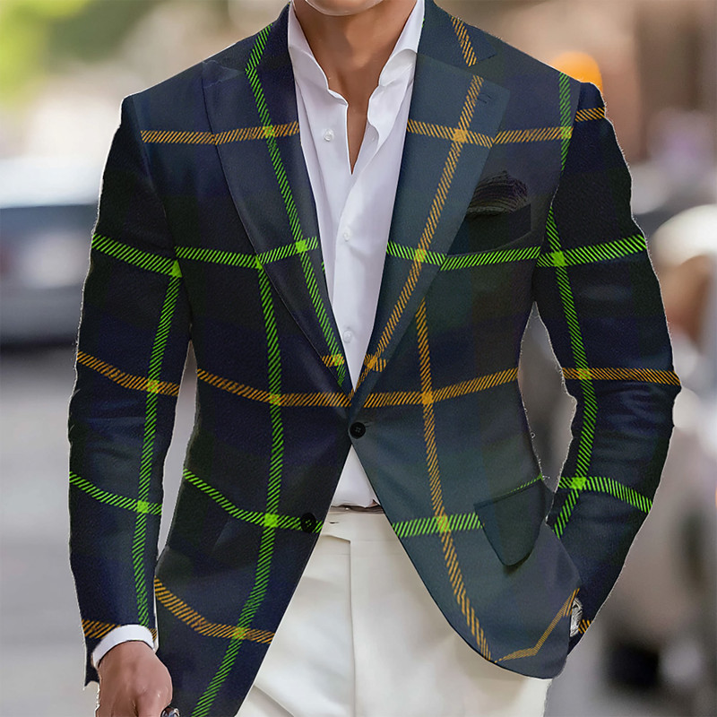 Men's Plaid Blazer Jacket Coat Comfortable Artistic Casual Party Evening Wear Daily Festival 3D Print Buttons Fall Winter Notch Long Sleeve Red Green