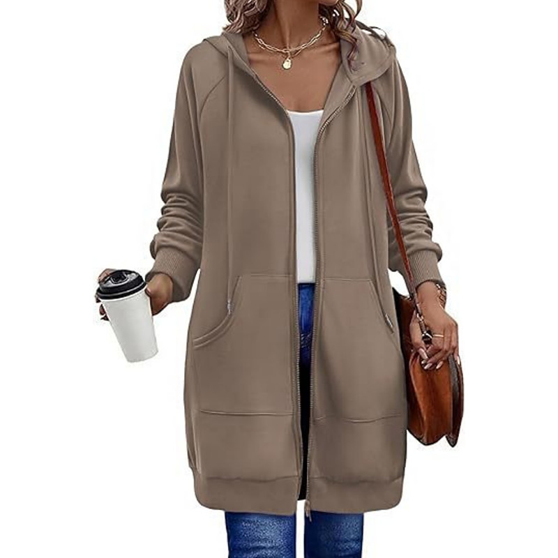 Women's Hoodie Jacket Comfortable Breathable Zipper Pocket Fashion Casual Plain Vacation Street Casual Daily Wear Zipper Regular Hooded Regular Fit Long Sleeve Outerwear Black Army Green Beige Spring