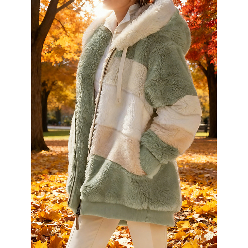 Women's Fleece Jacket Teddy Coat Hoodie Jacket Warm Breathable Zipper Pocket Fleece Lined Casual Street Style Color Block Vacation Street Daily Wear Going out Zipper Hoodie Regular Fit Long Sleeve