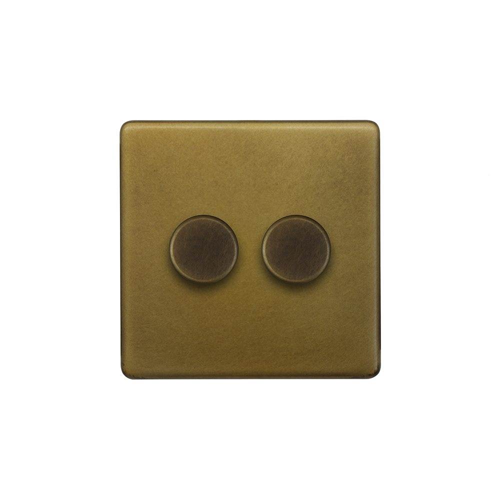Soho Lighting Old Brass 2 Gang 2-Way Intelligent Dimmer 150W LED (300W Halogen/Incandescent)