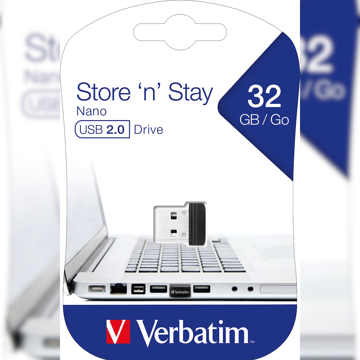 Verbatim USB 2.0 Stick 32GB, Nano Store'n'Stay (R) 10MB/s, (W) 3MB/s, Retail-Blister