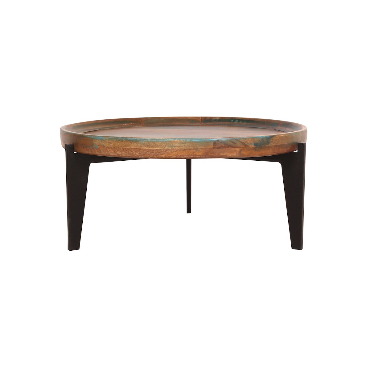 SIT Möbel Beistelltisch rund, mit abnehmbarem Tablett, Altholz mit Metall, bunt-schwarz, B 75 x T 75 x H 35 cm, 13943-98, Serie FIUME
