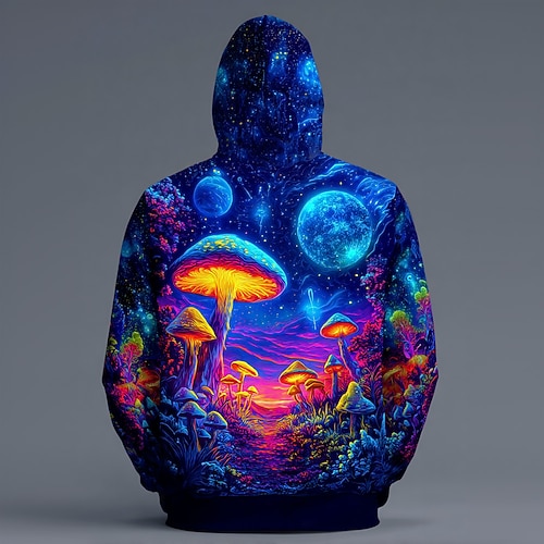 Per uomo Illusione ottica Fungo Felpa con Cappuccio Felpa Moda Cool Hippie 3D Manica Lunga Girocollo Casa Feste Abbigliamento casual alla moda Nero Blu Blu scuro Coulisse Autunno Inverno progettista